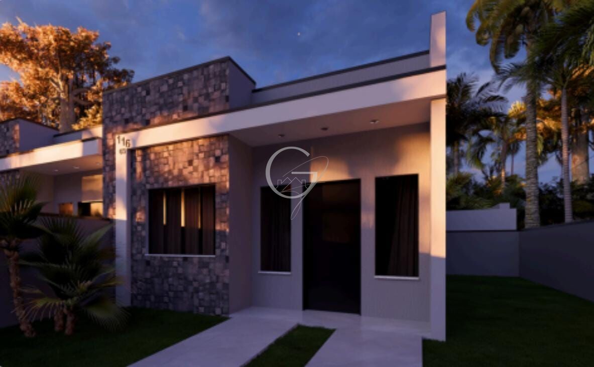Residência em alvenaria com 56,20 à 57,20m² de área total construída.