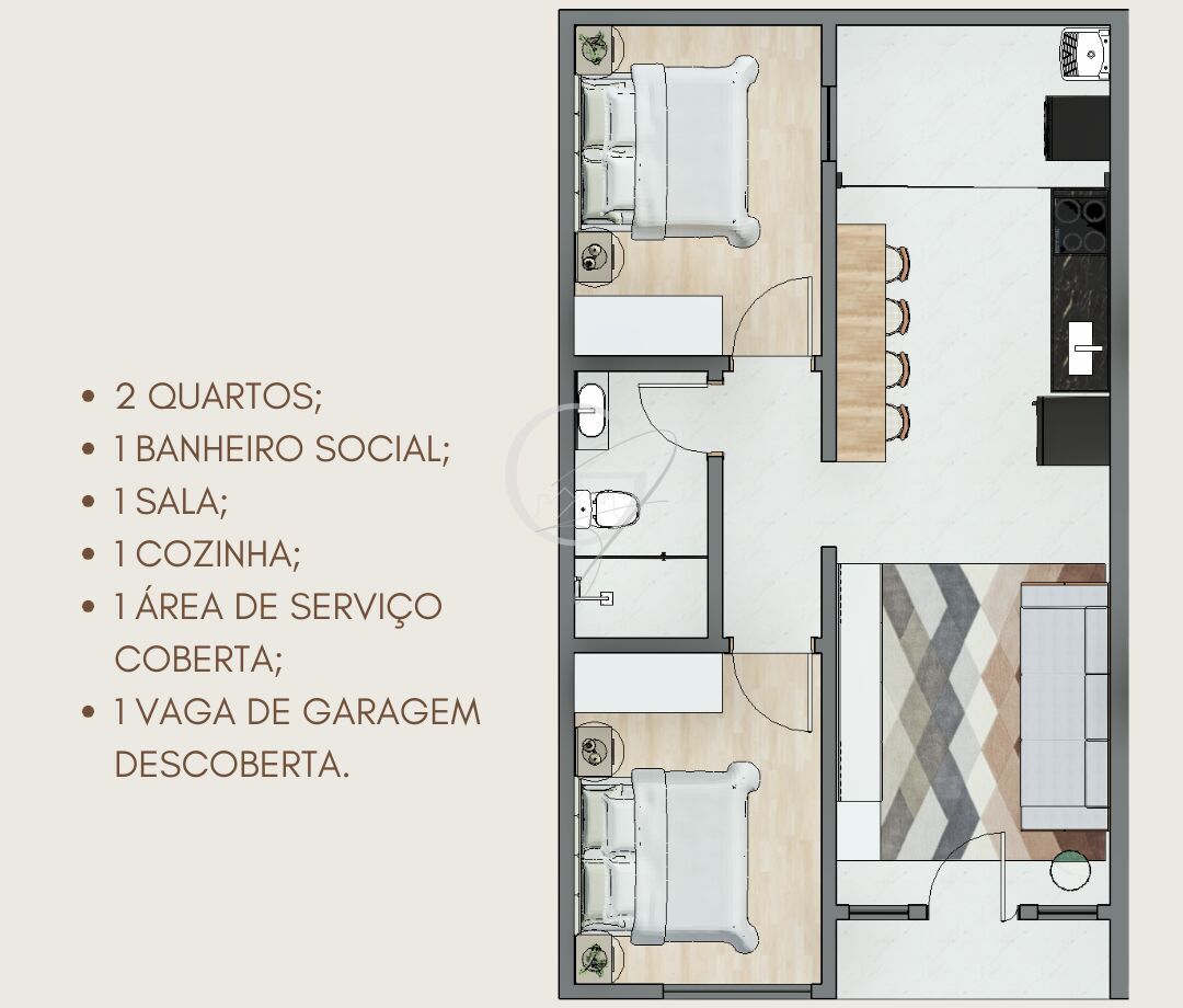 02 dormitórios;