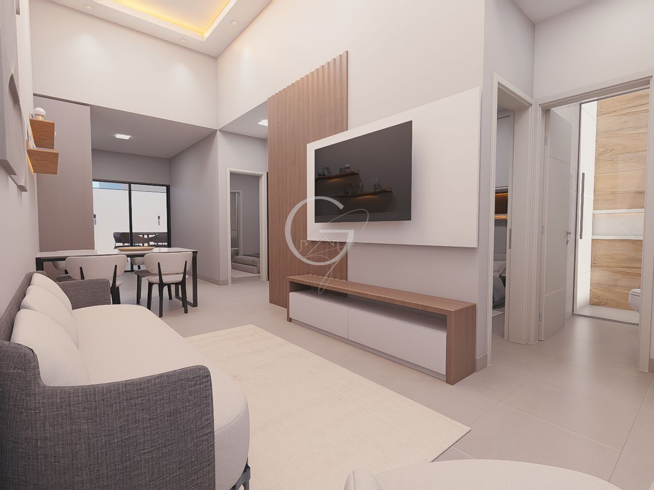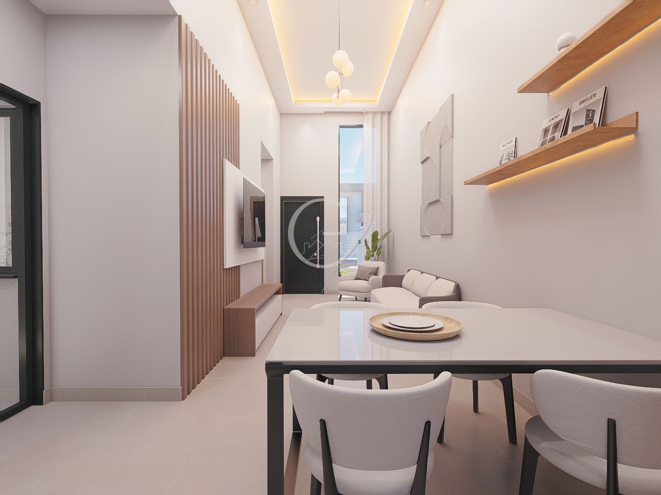 - Sala, copa e cozinha em conceito aberto